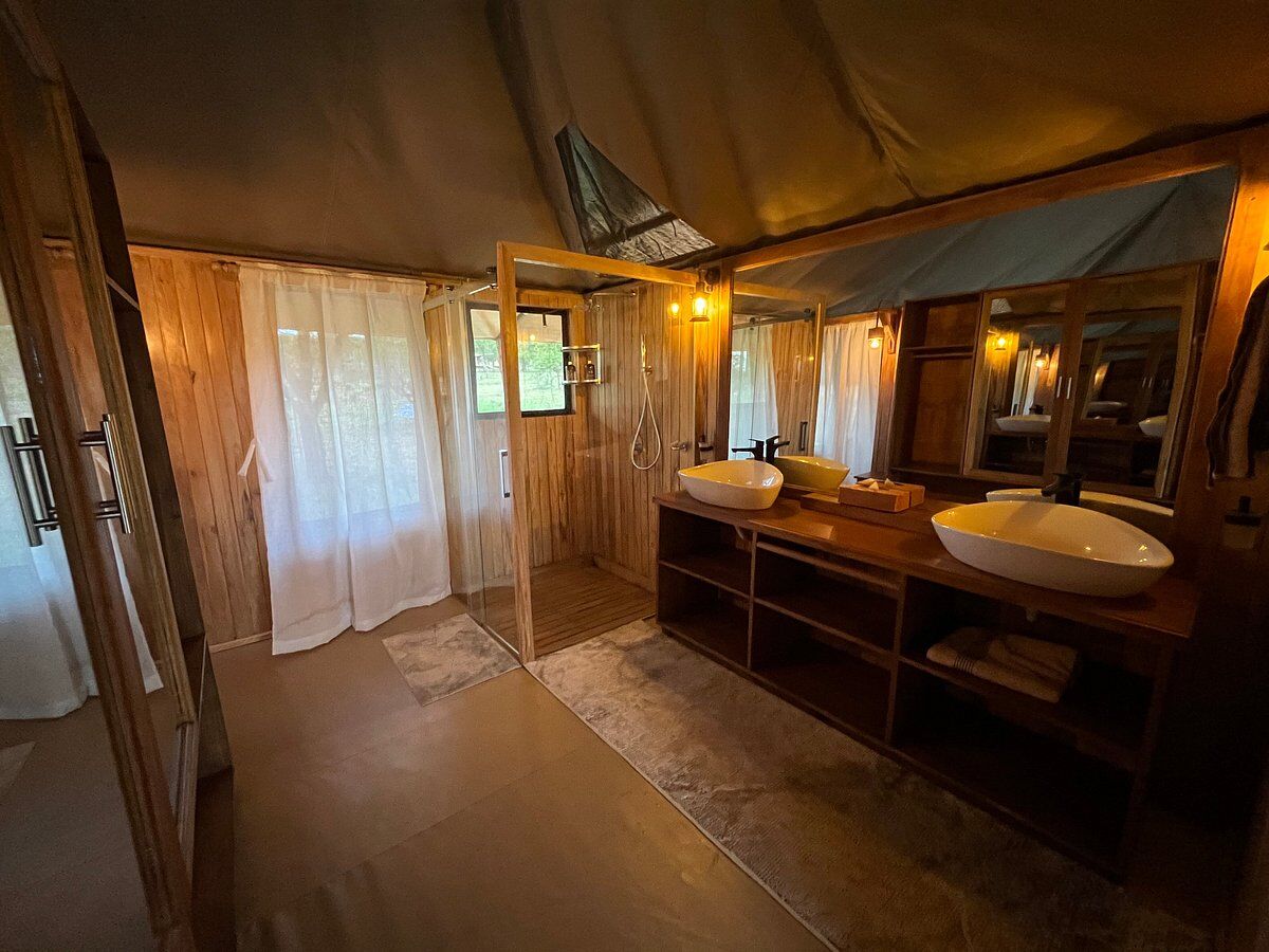 Het kamp bestaat uit tien extra grote luxe tenten (waaronder twee familietenten). In elke tent geniet je van goede bedden, een fijne zithoek en een vaste badkamer met warm water. ’s Avonds kun je dineren in de restauranttent, waar een chefkok met zijn team heerlijke en gevarieerde gerechten bereidt, rekening houdend met speciale behoeftes of dieetwensen. En omdat Into Wild Africa zo ontzettend afgelegen ligt, is er na het diner niks fijner dan bij het kampvuur te zitten met de uitgestrekte sterrenhemel boven je en de natuurgeluiden overal om je heen.