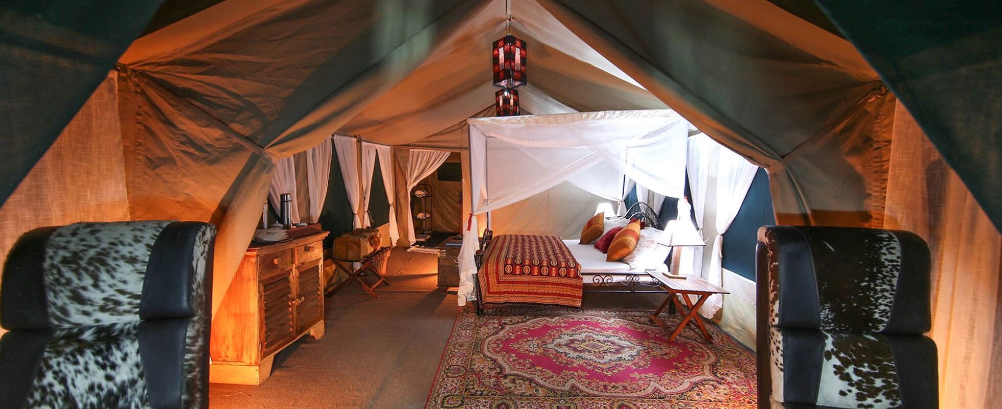 In dit kamp vind je tien tot twaalf mobiele tenten gemaakt van lokaal geproduceerd canvas met muggengaas. De tenten zijn voorzien van al het gemak dat je kunt bedenken, met onder andere twee- of eenpersoonsbedden, een kist en stoelen, kledingrekken, luxe beddengoed, en warme dekens in natuurlijke tinten voor koudere avonden. Op een eigen terras kan je bovendien heerlijk tot rust komen. Tegen etenstijd kan je terecht in de grote restauranttent, prachtig gelegen onder een indrukwekkende acaciaboom.