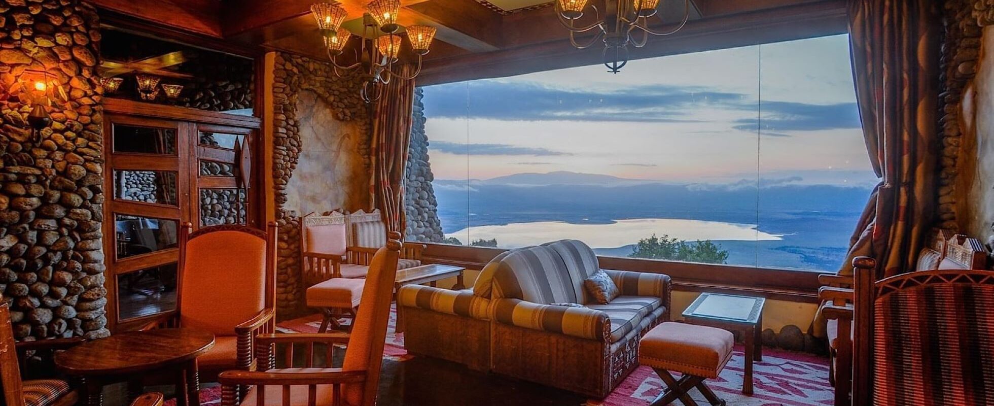 De Ngorongoro Serena Safari Lodge biedt het meest prachtige uitzicht over de vlakte van de eeuwenoude Ngorongoro krater met haar bijna onzichtbare ligging precies op de kraterrand, verstopt tussen lagen riviersteen en inheemse klimplanten. De 75 rustieke kamers volgen de rand van de krater, en bieden een bijna ouderwetse inrichting met rotsbalkons precies op de kraterrand, vaste badkamers en goede bedden, stuk voor stuk in bruin- en ecrutinten. De elegante maar relaxte dinerruimte van de lodge biedt een gloeiende openhaard, muren met prehistorische rotstekeningen, en – hoe kan het anders – datzelfde magische uitzicht over de krater, naast een goed en lekker diner. Het bijzondere aan deze luxe lodge is dat ze je het gevoel geeft bijna net zo oud te zijn als de krater zelf, maar dan stiekem toch voorziet in al je moderne behoeftes met bijvoorbeeld gratis WiFi, digitale TV en een spa.