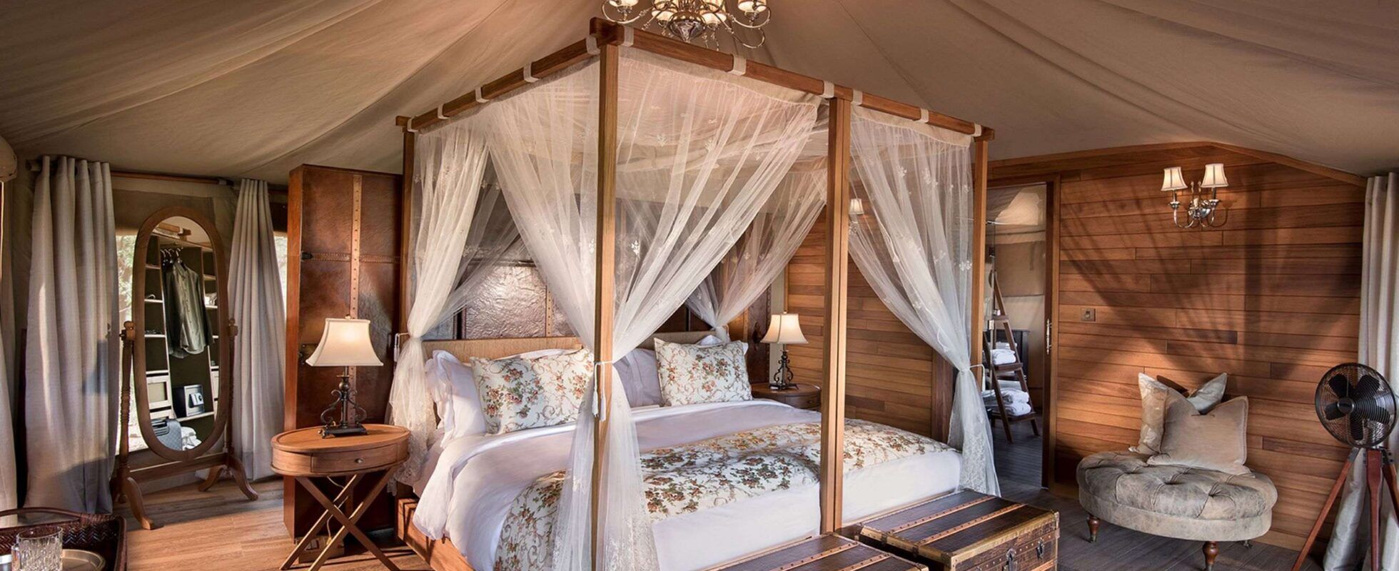Het tentenkamp van One Nature Nyaruswiga in het Serengeti National Park laat weinig te wensen over. De tenten zijn prachtig en ruim opgezet, met overdadig meubilair in een klassieke stijl, prachtige badkamers en buitendouches. De grote, zachte banken, de hemelbedden vol kussens, het houtvuur in de tent, de klassieke badkuip middenin de slaapkamer naast dat vuur… hier spreekt een luxe die zeldzaam is. Het kamp heeft twaalf tenten die geschikt zijn voor twee tot drie personen en twee familietenten waar maximaal zes gasten kunnen slapen. Behalve dat is er een lounge met bar, en restaurant met witte damasten kleden, prachtig servies, kristallen glazen en kaarsen in zilveren kandelaars, en een overloopzwembad met bubbelbad. Er is zelfs een platform om naar de sterren te kijken, waar je kan dineren vlak naast de enorme telescoop.