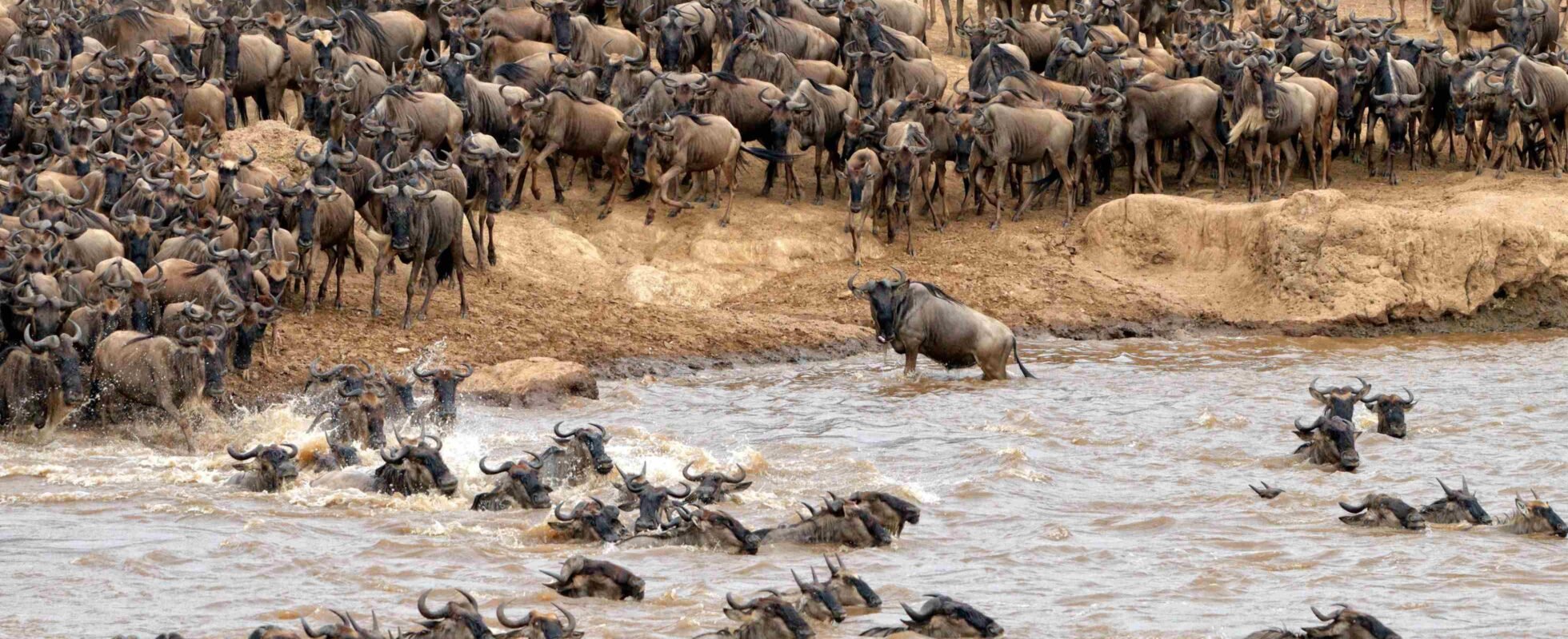 Stel je even voor dat je met je gids over de savannes van het noorden van Serengeti rijdt, en dan miljoenen gnoes en zebra’s tegenkomt die al blatend proberen een rivier vol krokodillen over te steken. Dat is dus de beroemde oversteek van de Mararivier van de Grote Trek, een natuurlijk fenomeen dat ieder jaar tussen juli en oktober te zien is in het noordelijk deel van Serengeti National Park. Let wel op: dit is niet voor watjes – want hadden we de roofdieren al genoemd die aan de overkant wachten, met net zo’n honger naar vlees als de kuddes naar groener gras hebben…?