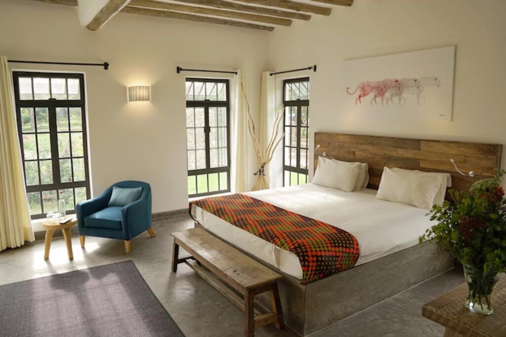 De kamers zijn ruim, gebouwd in een moderne Afrikaanse stijl, waarbij alleen lokale materialen zijn gebruikt. Een betonnen bed, een houten achterwand, stalen kozijnen met veel glas. Door de hoogte zijn hier weinig muggen. In alle openslaande ramen zijn horren gemaakt. Hierdoor is een klamboe niet nodig. De kamer is groot genoeg voor een derde bed. Arusha Villa heeft zes kamers voor twee of drie personen en twee familiekamers voor maximaal vijf personen. Het uitzicht vanaf deze kamers op de eerste verdieping is geweldig.