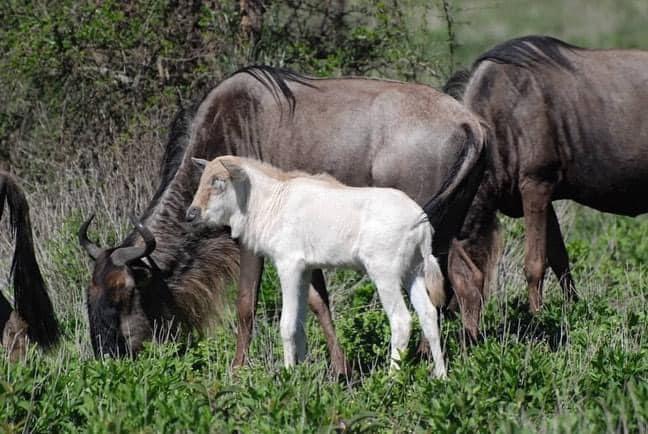 “Maar je weet het niet”, zegt Laizer tot slot. “Klanten van Tanzania Specialist zagen in september een albinobuffel in Tarangire, toen een paar dagen later een albinogiraf in Serengeti, tussendoor drie of vier albinobavianen in Arusha National Park, een zebra tijdens de Grote Trek in het noorden van de Serengeti en tot slot het gnoe kalf in Ndutu in februari. Je zou zo maar geluk kunnen hebben!”