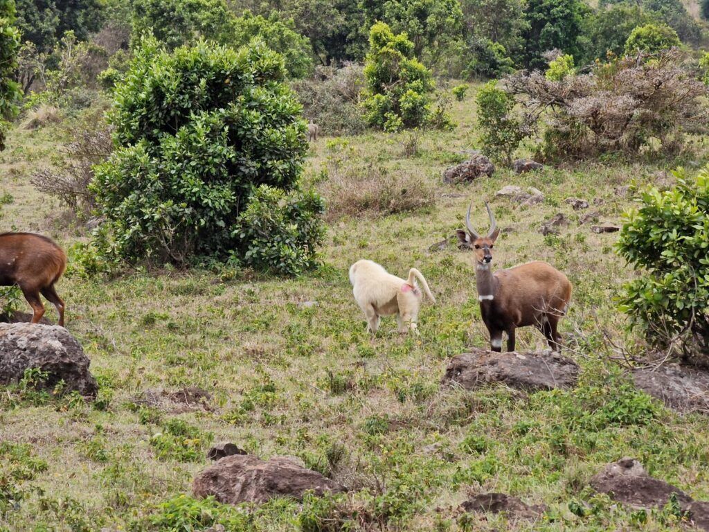 “Toevallig dit weekend nog maakte ik een video van een albinobaviaan in Arusha National Park. En vorige week zag ik daar een andere albinobaviaan met een normaal gekleurde baby.” Laizer, die opgroeide in het Maasai dorp Monduli in de regio Arusha, vertelt verder: “Daarnaast zagen collega’s in september een compleet witte buffel in het Tarangire National Park, en klanten zagen een albinozebra die net de Mararivier in het noorden van Serengeti overgestoken was. Tot slot is er begin februari een albino gnoe kalf gezien in Ndutu, de geboorteplaats van kalveren in de Grote Trek, net ten zuiden van de Serengeti.”